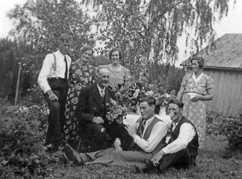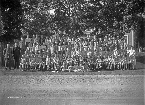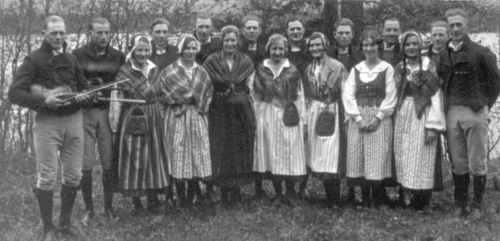 Bildtext: Forsa folkdanslag år 1931. Från vänster: Hilding Nordin, Pelle Trolin, Karin Trolin, Anton Larson, Märta Larson, Anders Westberg, Anna Löfgren, Folke Larsson, Olga Andersson, Manne Svärd, Edeltrud Kaulich, Per-Johan Larsson, Greta Liljeblad, Olle Trolin, Ingrid Svärd, Erik Hed och Gustav Larsson.