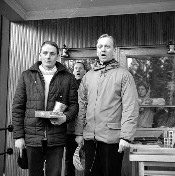 De som står på trappan: Bo Jonsson(?), Karl-Axel Jonsson(?), Inga-Lill Grundström, Mona Olsson och magistern Staffan Nyman. Nedanför: Berit Anderson, Elisabeth Jonsson, Siv Rahm, Sol-Gerd Sand, ?, Kennet Berg, Åke From och Bosse Hildingsson.