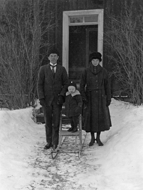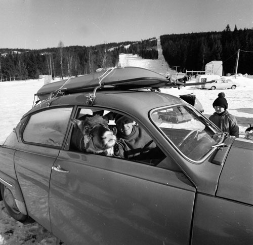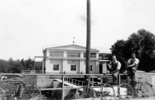 Troligen Lars Olsson, Ölsund, man till vänster och mannen till höger är troligen bilskolelärare Anders Jonsson, Hudiksvall, född i Ölsund, svåger till Lars Olsson.