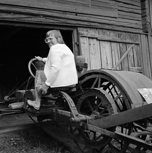 Bildtext: Text på kortets baksida: "Hilma Pingstdagen 1928". Detta är "Byströms-Hilma" från Ölsund. Hon gifte sig senare med Olof Byström i Trogsta. Bilen är en 4 cyl Chevrolet.