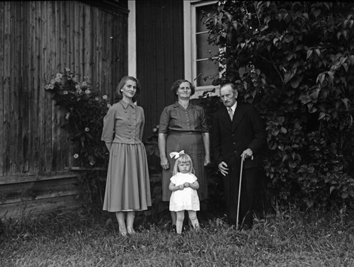 Bildtext: Det äldre paret är: Stina och Wilhelm Jonsson, Dånsjön, Överby, Forsa samt dottern till vänster som heter Virginia samt hennes lilla dotter Ann-Christin.