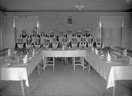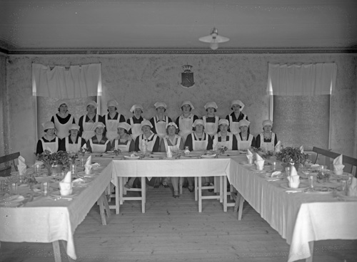 Sökord: gruppfoton, SLU, skolkök, kvinnor, dukning, Forsberg, före 1935, rum Motivkategori:gruppfoton Id:5236 Fotograf: Ragnar Forsberg, Näsviken, Forsa Fotoår: före 1935 Bildnummer: rf-N-53 Förening: Forsa Sockens Hembygdsförening Land: SE Motivplats: Gävleborg, Hudiksvall, Forsa Teknik: inskannad glasplåt 18x24 cm, s/v, 8-bitars gråskala, 600 dpi Rättighet: Forsa Sockens Hembygdsförening Originalplats: (visas ej publikt)