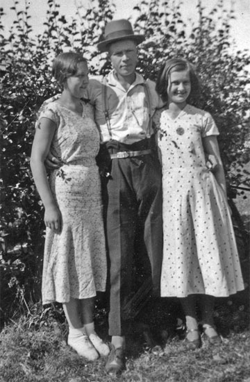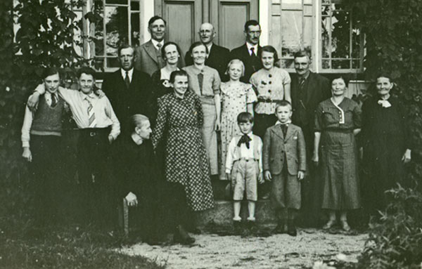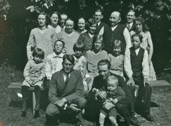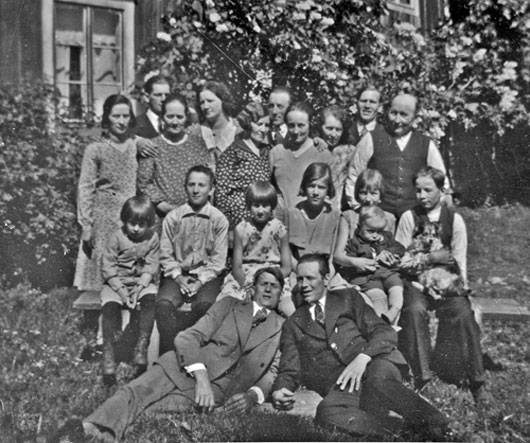 Bildtext: Släktträff på Ystigårn i Forsa. Längst fram: Lars Larsson och Edvin Svensson