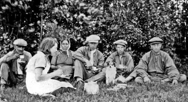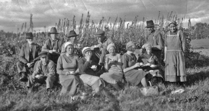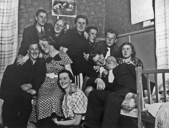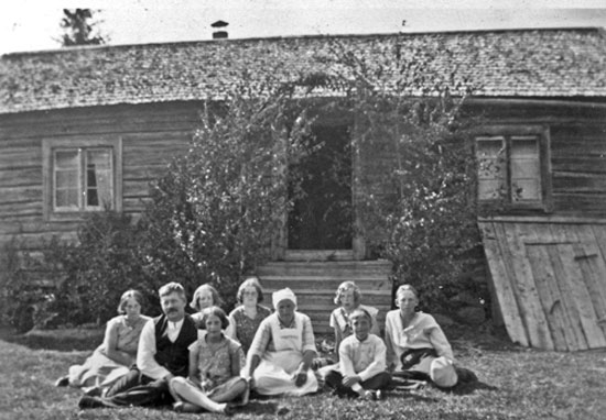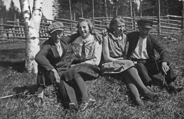 Bildtext: Ungdomar från Vålsta och Rumsta vid Stenmarks veranda