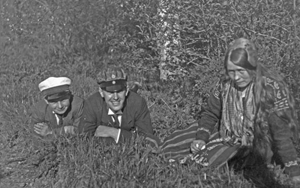 Sittande från vänster: Sara (Petters piga från Härjedalen), Hilding PH Lindh, Karin Andersson (Fredlund) Per Nilsson (PostPelle), Längst bak från vänster: Martin Bergström Tåsta (Ludvigs son), Linnéa Mattsson (Månsson), Nisse Eriksson och Lars Nilssson
