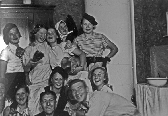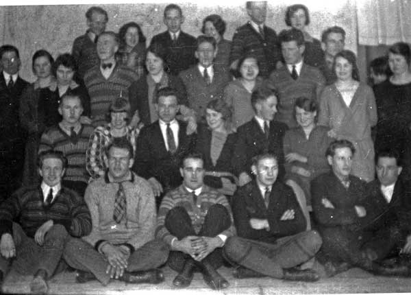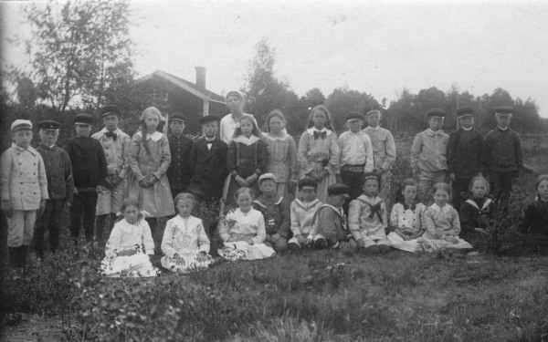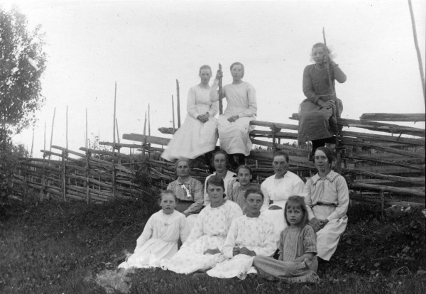 Bildtext: Nils Bergström, Herman Kron, John Mars, Per Olsson,?, Anders i Sörgårn, Albert Jansson, Anna Lundkvist,Märta Älg, Helena, Per Berglöv,Hilding,?,Jonas,Johan Kron,?,?,Storm Karin Larsson,?,?,?,