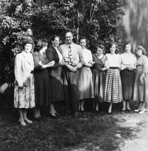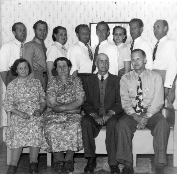 Sökord: Kvinnor Män Barn Motivkategori:Gruppfoton Id:9061 Fotograf: Oskar W.Olsson Hudiksvall Fotoår: okänt Bildnummer: MT-privat Förening: Forsa Sockens Hembygdsförening Land: se Motivplats: Gävleborg Hudiksvall Forsa Utnäs Teknik: inskannat foto10 x14,5 cm, 8 bit/grå skala Rättighet: Marta Trolin Originalplats: (visas ej publikt)