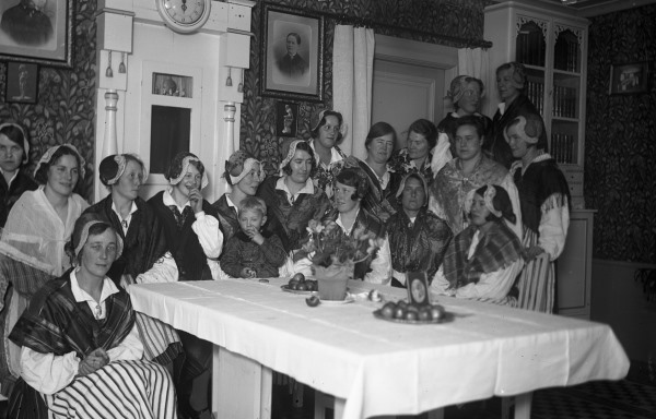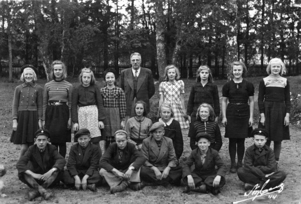 Bildtext: Arbetare vid sågen i Sörforsa, startade 1895, senare ångsåg på 30-talet. Övre raden från vänster: Frans Westlund, Jonas Tärneborg, Erik Gröndal, Lasse Svedberg, Gunnar Norell, Olle Jonsson, Alf Jonssons far, Gunnar Svärd. Andra raden: Delsbo-Jonke, Bror Fors, Ville Gröndal, Gustaf Westlund, Hans Imberg, Pelle Terneborg, Westlund från Trogsta, Nils Eriksson. Nedre raden från vänster: Johan Westlund, Per Terneborg, Per Andersson, Helga Erikssons far, Teodor Svärd, Johan Sköld, Kalle Norell, Kalle Westin Mikje, Olle Jonsson gift med Svea Hedsta, Lindgren gift med en syster till Karin på Kares Cafe