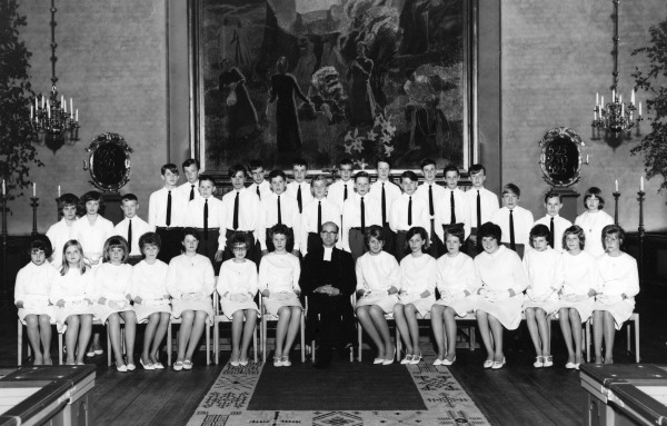 Sittande fr.v. Ingegerd Wikberg, Eva-Lisa Pihlström, Monica Yngvesson, Ingegerd Flank, Ann-Kristin Nygren, Eva Ljung, Elisabeth Elving, Prästen Gustaf Rask, Kerstin Andersson, Ann-Kristin Nilsson, Karin Blom, Eva Karlsen, Karin Östlund, Ninni Persson, Britt-Mari Moberg