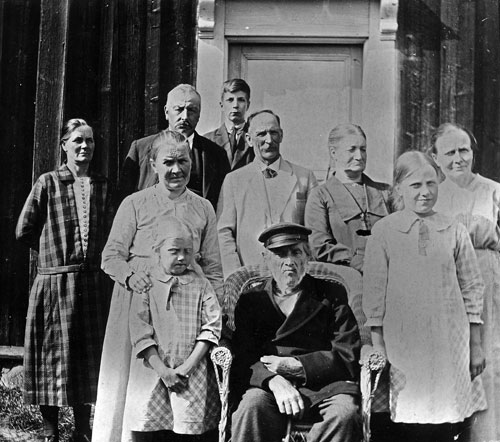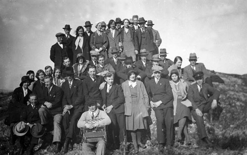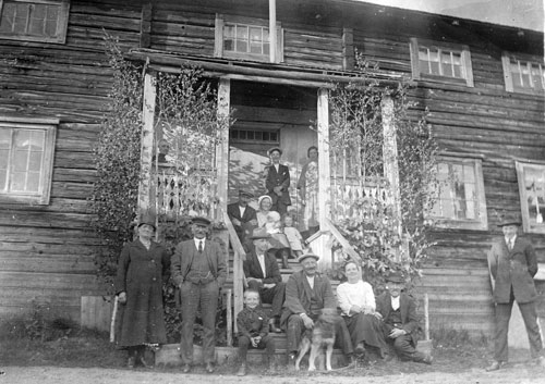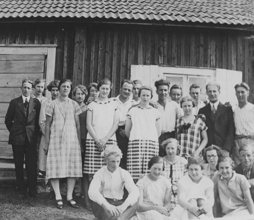 Bildtext: Gruppfoto från Matnäs skola. Till vänster om frk Anna Stålbo, lärarinna, står Olof Erikson,Näset. Tredje från lärarinnan, Nils Persson, Mikje och den fjärde Ling Erik. Den sjätte från lärarinnan är Erik Andersson Hammars. Flickan med hatt i nedersta raden, Cecilia Larsson, Näset. Längst till höger sitter Pelle Trolin. Nr 4 på mittenraden, med huvudbonad som det står Sverige på, är Katarina Gillströms mormor Iris Halvarsson (f. Jonsson). Hon var född 1909-01-06. Lärarinnan Stålbo var Iris faster. De kom båda från Stockholm.