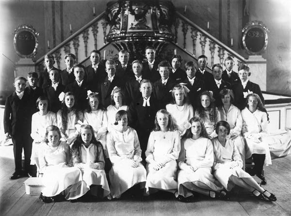 Övre raden: Thure Larsson, Stig Widmark, Sigge Andersson, Martin Larsson, Viktor Berg, Eskil Skog, Sören Nordin. Susanne Swang: Ruth Öhman (gift Klaar är min mormor, bodde hela sitt liv i Näsviken) var född 1915 så det här är nog fotat runt 1923-25.