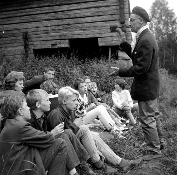 Bildtext: Forsså skola. Närmast Björn Halvarsson. Till vänster en halv Lennart Jonsson Byberg.