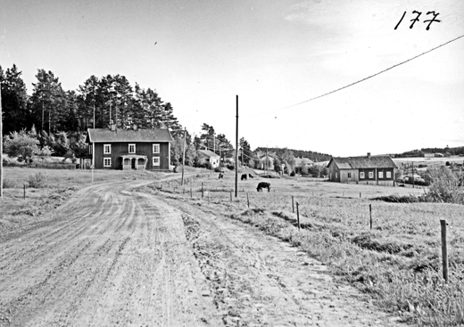 Bildtext: Hamre vänstra huset byggdes av Henning Pettersson. Det högra byggdes av Hilding Olsson "Ket-Hilding". Nu bor Bonny Sjöblom där. Gerd Östberg säger att i huset till hö där Bonny Sjöblom bor idag, bodde fam Gustav o Milda Östberg, med barnen Elisabeth,Lena o Gerd o Bosse Hagström. Mellan år 49-ca 82?