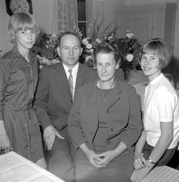 Bildtext: Familjen Lars Nilsson, Vålsta. Från vänster: Elisabeth, Lars, Anna och Kerstin. Lars Nilsson fyller 50 år.