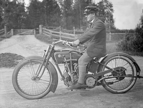 Konrad Forsberg på motorcykel (äldre foto). Johan Konrad Forsberg ca: 15 år med syster Gunborg Maria ca: 6 år på en Indian Motocyckel från ca: 1914, stående i korsning Norrviksta 122 och 124 Forsa, bakom grinden på bild går järnvägen från Hudik till Ljusdal. I Norrviksta 124 Forsa fanns bostad, måleriverkstad med lärlingar samt färg, tapet och diversehandel som drevs av målarmästare Nils Otto Forsberg, senare startades en begravningsbyrå som sköttes av Konrad Forsberg och hans fru Alice Kristina (Eklund). Indian motocyckel (utan r) en prototyp fanns från 1901 byggd i Amerika, där motor och cykel till stor del hade skapats av Carl Oscar Hedström född i Lönneberga 1871, utvandrade till Brooklyn Amerika 1880 med hela sin familjen på fem personer, systrar och föräldrar. Alice Kristina Forsberg var min kära farmor. Mvh Jan-Erik Sundin