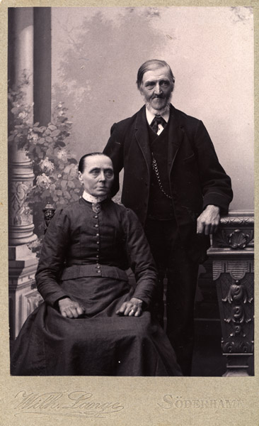 Bildtext: Gåva av Anton Westin gift med Elin Westin. Elin Vestins farmor och farfar. Lars Erik Larsson född 19/5 1861 i Enånger avled 9/3 1938. Kolare och arrendator i Rödmyra 1. Hustru Helena Katarina Persdotter född 3/8 1832 i Njutånger. Avled 28/11 1933. Hon kallades Lena Kajsa. /Anton Westin sökord: motivkategori: personer id:20352 Fotograf: Okänd fotoår: Okänt bildnummer: SKT-018 förening: Forsa Sockens Hembygdsförening land: SE motivplats: Gävleborg, Hudiksvall, Forsa teknik: Inskannad påsiktsbild, 48-bitars färg, 800 dpi, 19,0 X 25,1 cm rättighet:(föreningen ovan om ej annat anges.) Forsa Sockens Hembygdsförening originalplats: (visas ej publikt) släktboken: 33R1 publiceras: ja säljas: tidigare nr: samling: Skänkta skick: reg av: KO reg datum: 2026-02-03 |