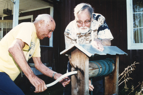 Bildtext: Vid "Pappers" i Iggesund tre cyklande Njutångersbor