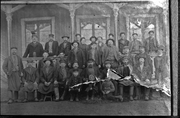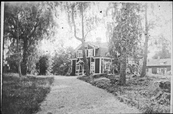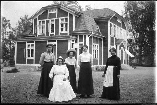 Bildtext: År 1919 på Ogestad. Elev Sture, Emma, Erik Karlsson Odensvi, Charlotta, Emma, lillpojken Karl Wilén, Tage, Einar, Greta Jakobsson, lillpojk Gunnar K, Rut Wilén, Gunhild Karlsson.