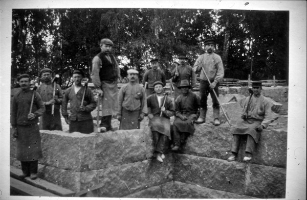 Sökord: husgrund grundstenar bygge arbetslag stenhuggare Motivkategori:arbete Id:4575 Fotograf: okänd Fotoår: 1908 Bildnummer: CB_Repro_0537 Förening: Odensvi hembygdsförening Land: SE Motivplats: Kalmar län, Västervik, Odensvi, Ogestad Teknik: Skannat sv/v foto Rättighet: Originalplats: (visas ej publikt)