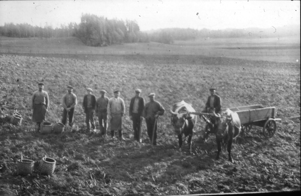 Sökord: potatisplockning pära oxkärra oxar oxe Motivkategori:jordbruk Id:4725 Fotograf: okänd Fotoår: okänt Bildnummer: CB_Repro_0808 Förening: Odensvi hembygdsförening Land: SE Motivplats: Kalmar, Västervik, Odensvi, Ogestad Teknik: Skannat svartvitt foto Rättighet: Originalplats: (visas ej publikt)