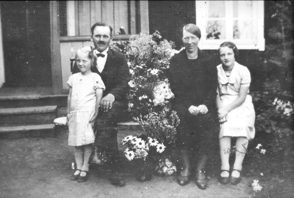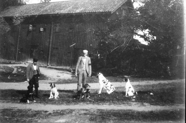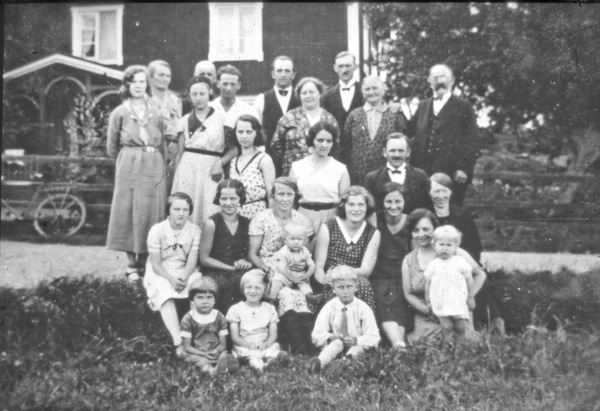 Bildtext: Potatisplockning i Eneby. Fr.v. Axel Johansson, August Karlsson, Ragnar Nilsson, Hugo Karlsson, Uno Olsson, David Andersson, Elis Johansson, Karl Olsson