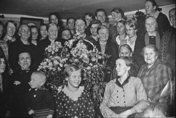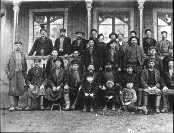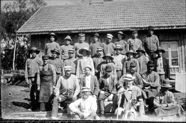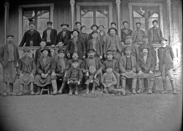 Bildtext: Linryckning I Ogestad. Hjalmar Karlsson, Ogestad och Valentin Anderson, Eneby.
