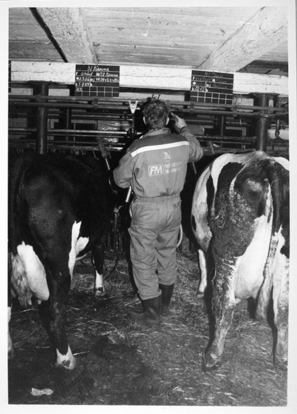 Sökord: ladugård mjölkkor mjölkanläggning rörmjölkning spenkoppar åstäne foderkrubba mjölktavla Motivkategori:jordbruk Id:12620 Fotograf: Annika Werner Fotoår: 1991 Bildnummer: ANDE397.jpg Förening: Odensvi Hembygdsförening Land: SE Motivplats: Kalmar län, Västervik, Odensvi, Karrum Teknik: Scannat sv/v foto Rättighet: Annika Deltin, Gamleby Originalplats: (visas ej publikt)