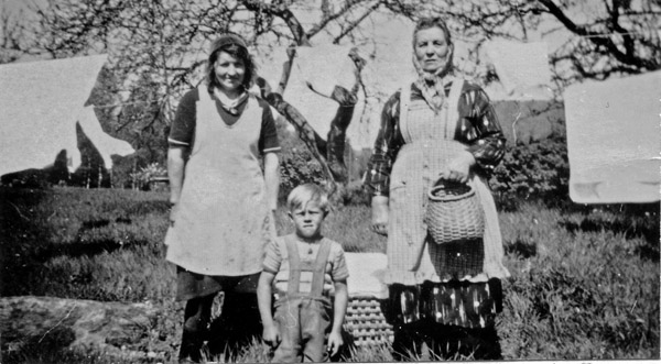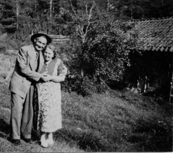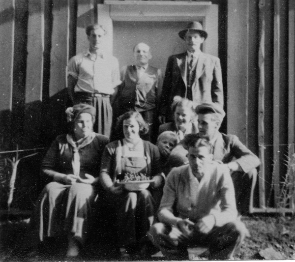 Bildtext: Hos familjen Enström, Ekbacken, Odensviholm. Sittande fr.v. Arvid o Ottilia Enström, Ester och Severin Jakobsson. Stående fr.v. barnen Svea Jakobsson, Eivor Enström, Gunvor Enström, Karl-Axel Jakobsson, Lisa Jakobsson.