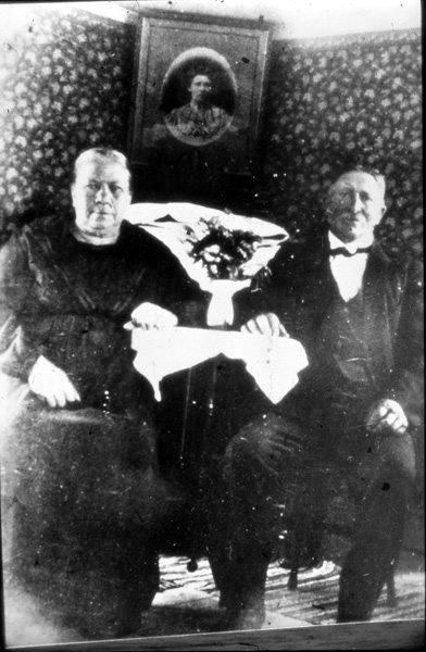 Bildtext: Gustav och Mina Svensson. Föräldrar till Märta Karlsson, Frö, gift med Ture Karlsson, ca 1920.