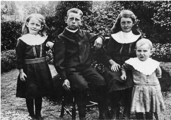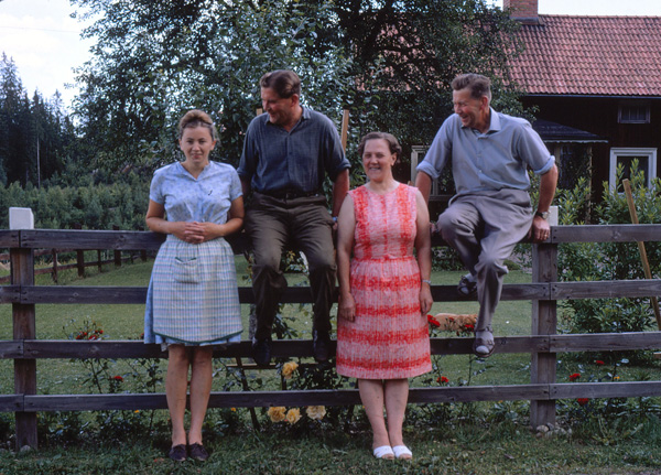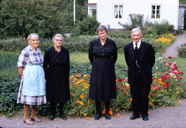 Bildtext: Bild från Grabo, Odensvi. Rut Pettersson (Grabo), Edit, Astrid Wennerberg (Smitterstad) o Hugo Wennerberg (Smitterstad).