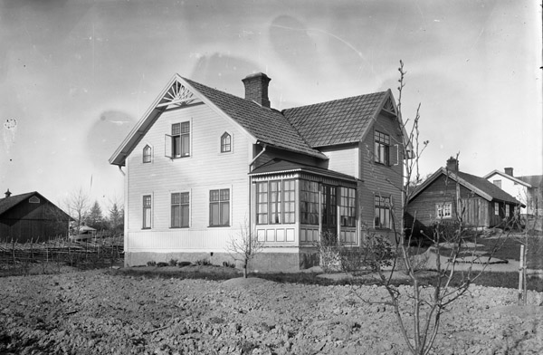 Bildtext: En dam fotograferad ute i nysnön troligen i trädgården, Haga, Boda. Vet någon mer ?