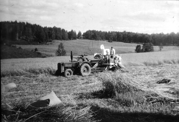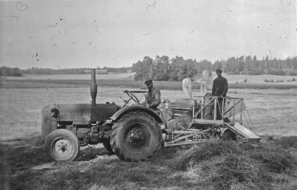 Bildtext: Einar Karlsson, snickare, i Blåskulla på en motorcykel av märket Gripen årsmodell 1939. Motoreffekt 2,8 hkr, vikt 55kg. Einar var ägare till denna mellan 27/6 1946 till 12/8 1947 då han sålde den till Karl Pettersson i Källarhult.