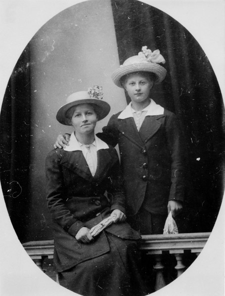 Bildtext: Till vänster LINNÉA Viktoria Pettersson född 25 jan 1889 i Rummelsrum, Gamleby. Till höger ALVA Tilly Josefina född 25 mar 1900. Döttrar till Nils Robert Johan Alfred Pettersson född 22 feb 1852 i Odensvi och Josefina Karolina Jonsdotter född 5 jan 1859 i Gamleby. Storebror till Linnéa och Alva är Johan David UNO född 17 jun 1886 i Gamleby. DE bodde i Smitterstad.