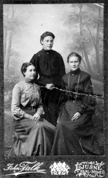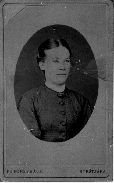 Bildtext: Hildur Lovisa Kristina Svensson född Nilsson, den 25 okt 1885 i Udden, Odensvi socken. Död 30 jan 1966. Föräldrar: Gottfrid och Lovisa. Kortet är taget i Helgsjönäs (Forshag) med hunden Nelly.