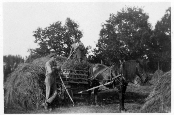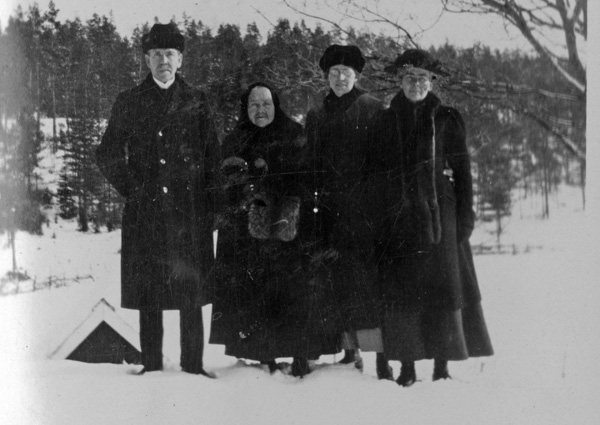 Bildtext: Brunt äldre litet tygalbum från Karrum. Richard f 1897, Svea f 1903, Gösta Nilsson f 1908, Karrum Mellangården, Odensvi, Kalmar län.