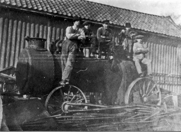 Bildtext: Lokomobil någonstans i Odensvi, kanske till ett sågverk.