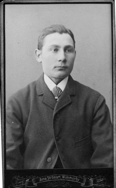 Bildtext: En man med mustasch och slips. Vet någon vem ? Samma bild finns på PiL249 och en gissning är Melker Andersson i Västrabro. Född 11/9 1881 i Bredhultshaga, Karrum.