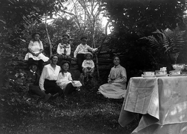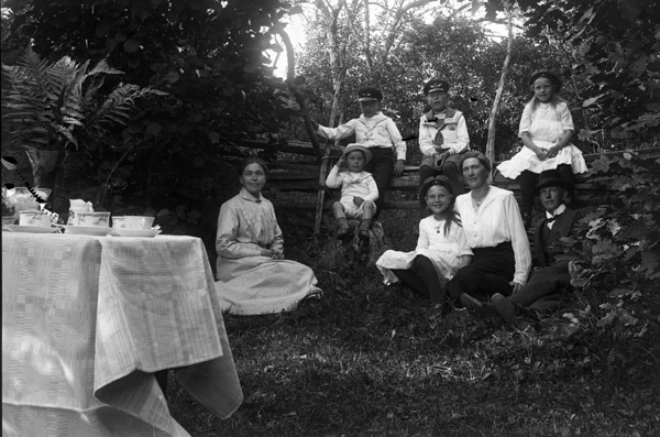 Sökord: familjebild gruppbild utflykt ormbunke kaffekoppar sockerskål gärdesgård blomvas Motivkategori:fritid Id:11570 Fotograf: Erik Olsson, Haga, Odensvi Fotoår: ca 1910-1920 Bildnummer: EO658.jpg Förening: Odensvi Hembygdsförening Land: SE Motivplats: Kalmar län, Västervik, Odensvi, Boda Teknik: Rättighet: Odensvi Hembygdsförening Originalplats: (visas ej publikt)