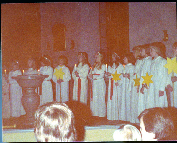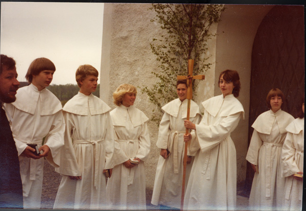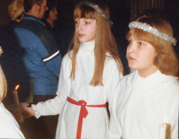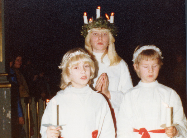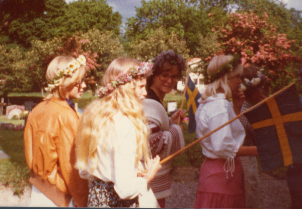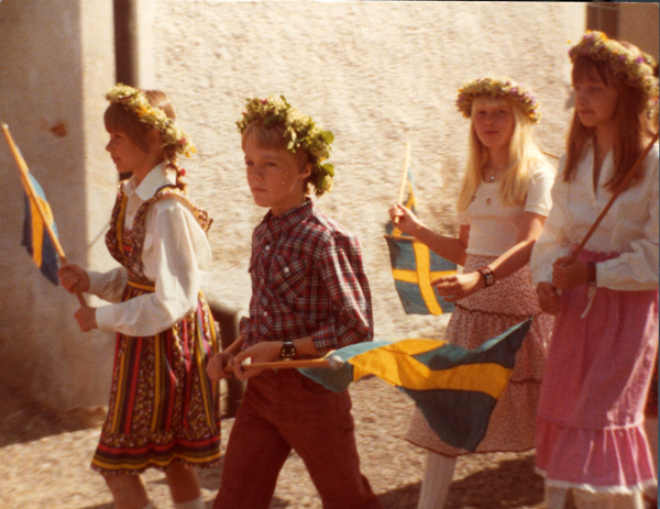 Bildtext: Skolavslutning i Odensvi skola 1977. Annika Östergren, ?Jörgen Svensson??, Susanna Werner, Louise Bröme.