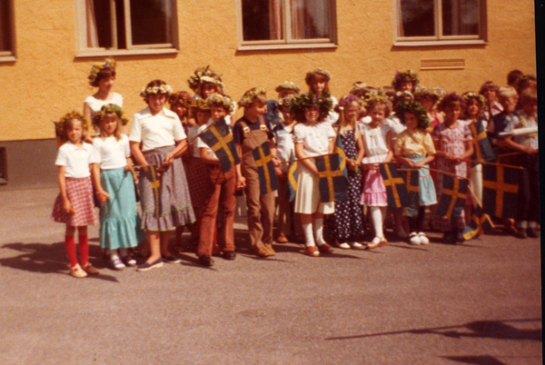 Sökord: Odensvi skola Odensvis skola blomsterkransar skolelever skolbarn sommarlov flaggor flagga Motivkategori:skola Id:12574 Fotograf: okänd Fotoår: 1977 Bildnummer: ANDE310.jpg Förening: Odensvi Hembygdsförening Land: SE Motivplats: Kalmar län, Västervik, Odensvi, skolan Teknik: Skannat färgfoto Rättighet: Skolavslutning i Odensvi skola 1977. Originalplats: (visas ej publikt)