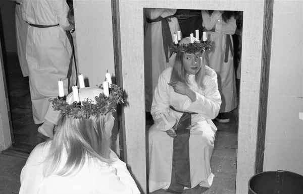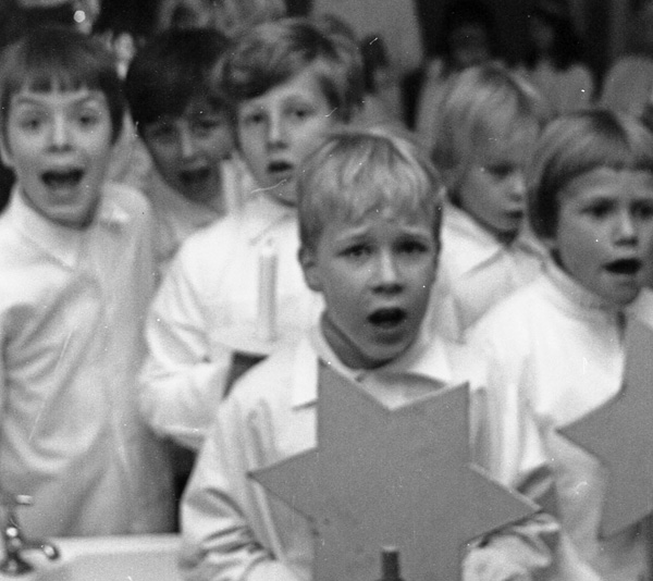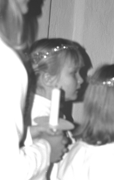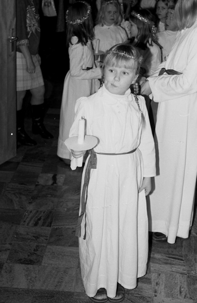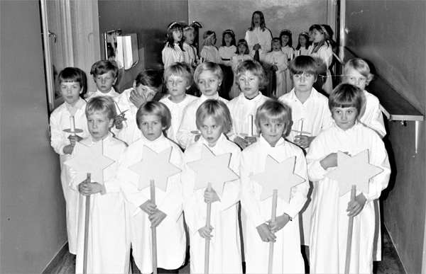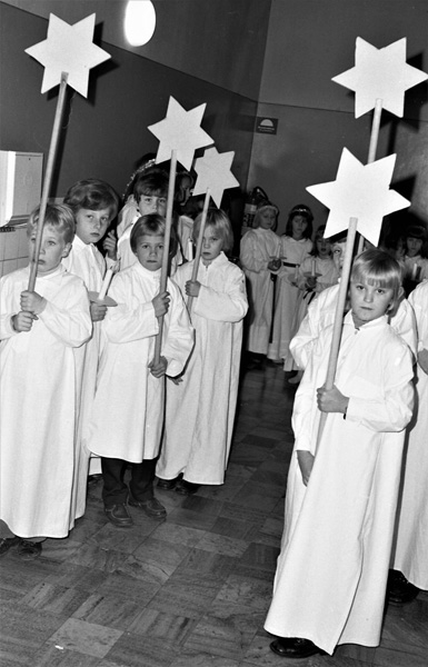 Sökord: luciatärna stjärngosse lucialinne stearinljus Motivkategori:kyrkligt Id:12873 Fotograf: Kjell Mårtensson Fotoår: troligen 1971 Bildnummer: KJMA1187.jpg Förening: Odensvi hembygdsförening Land: SE Motivplats: Kalmar län, Västervik, Odensvi, byn Teknik: Scannat sv/v negativ Rättighet: Olof Mårtensson Originalplats: (visas ej publikt)