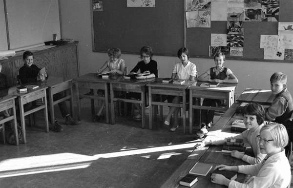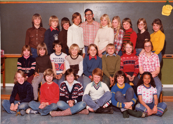 Bildtext: Klassfoto från Odensvi skola klass 5-6, lärare Kjell Mårtensson år 1977. Ulf Olofsson, Mikael Svensson, Ulf Svensson, Åke Karlsson, Kjell , Susanne Johansson, Annika Werner, Ingalill Gustafsson, Ingela Johansson, Lotta Mårtensson. Mellanraden: Annelie Persson, Johan Sand,Torgny Pettersson, Kjell Andersson, Ulf Karlsson, Börje Karlsson, Urban Karlsson, Annika Svensson. Sittande framför: Anders Forsberg, Gunilla Andersson, Anette Thuresson, Greger Öhman, Staffan Greek , Terri Martin.