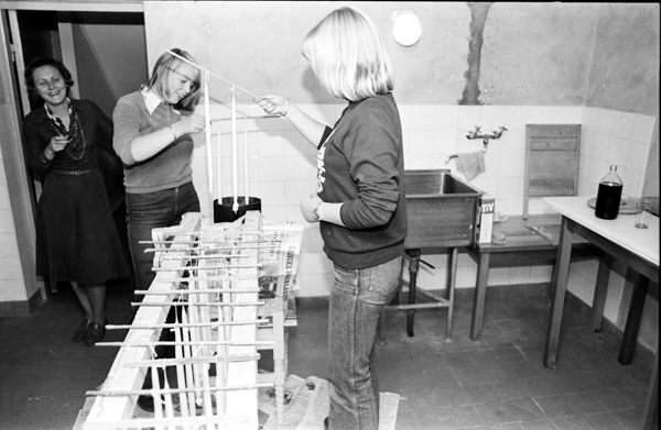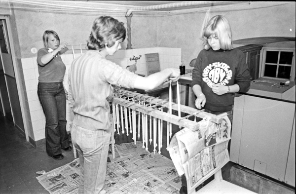 Bildtext: Klass 9B gör saker för skolresa i Ogestad 7710. Ingrid-Märta Bröme, Lena Tureson och Gunilla Johansson stöper ljus.