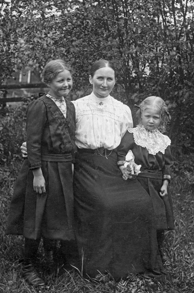 Bildtext: Slöjdflickorna i Mulestad skola 1943 eller 1944 med lärarinna Elin Arvidsson.