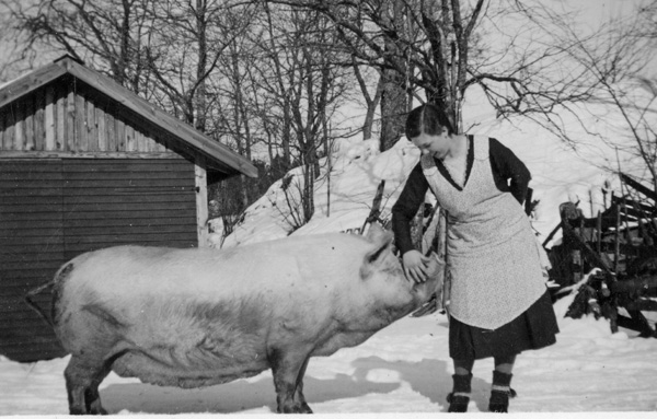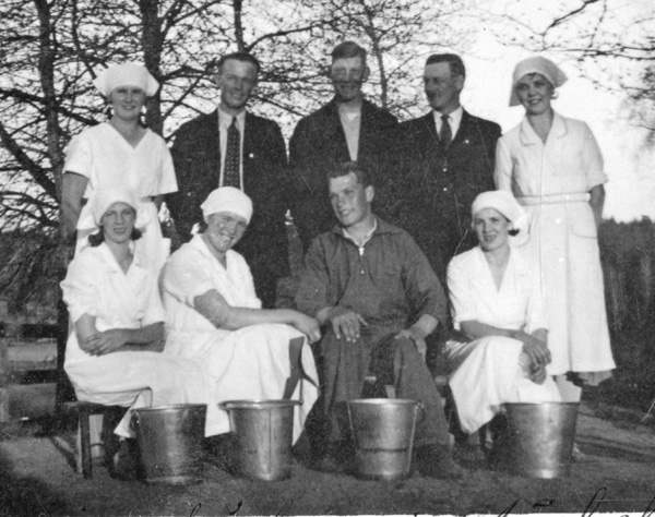 Kvinnan stående längst till höger är Elsa Andersson, Bockrödsle, gift med mejeristen Karl-Inge Nord Frödinge. Han började sin yrkesbana på mejeriet i Odensvi.