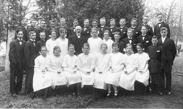 Sökord: konfirmation konfirmander präst prost prästkrage psalmbok fluga gruppbild läsa fram Odensvis kyrka Axel Zanden Motivkategori:kyrkligt Id:13430 Fotograf: okänd Fotoår: troligen 1926 Bildnummer: BAMA028.jpg Förening: Odensvi hembygdsförening Land: SE Motivplats: Kalmar län, Västervik, Odensvi, byn Teknik: Skannat sv/v foto Rättighet: Barbro Magnusson, Västervik Originalplats: (visas ej publikt)