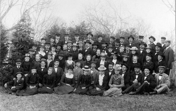 Bildtext: Skolklass i Jonstorp, 1907, fröken Freja Ankar från Viken, Skåne.