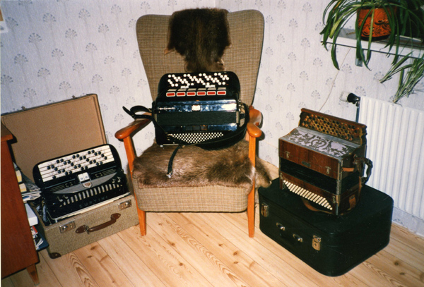 Bildtext: Konfirmandjubileum 2003, fest efteråt i Odenskans 2003. Janne Gustafsson, Hybbel och Torvald Lindersson, Odensvi står för musiken.