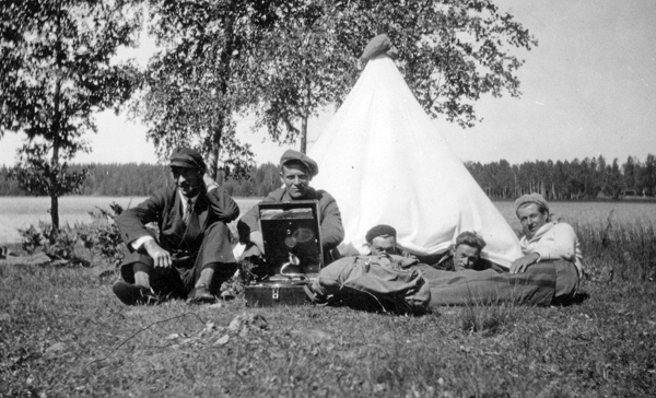 Bildtext: Ivar Johansson, Torpa, okänd, Algot Karlsson, Torpa, okänd, Einar Johansson, Lilla Jonstorp, Torsten på växel.
