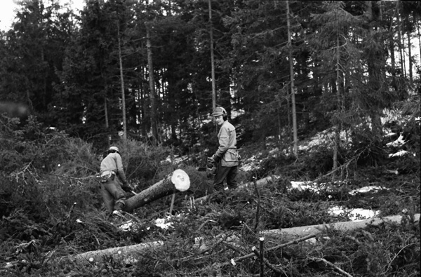 Sökord: avverkning timmer bark fura tall Motivkategori:skogsbruk Id:5474 Fotograf: Carl-Axel Bröme Fotoår: 1978 Bildnummer: CB4410 Förening: Odensvi hembygdsförening Land: SE Motivplats: Kalmar, Västervik, Odensvi, Ogestad Teknik: Skannat sv/v negativ Rättighet: Originalplats: (visas ej publikt)